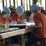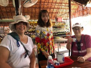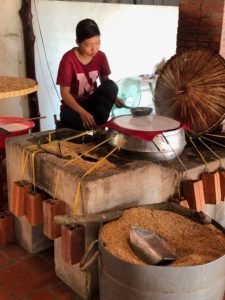 The next day it was off to a village where extended families work together in various Mom & Pop businesses. First we watched as several young people made rice paper, then rice candy, then wrapped and packaged them.