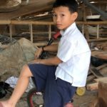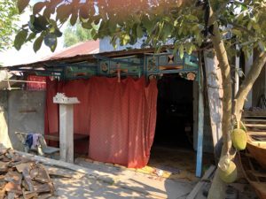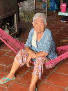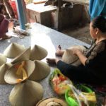 Either that day or the next we visited another village where the wealthiest member makes conical hats or Non-Las, as they call them. It’s said that if you have a motor scooter and a flat screen TV, you’re rich. She had both! (See her flat screen in the photo on the right!)