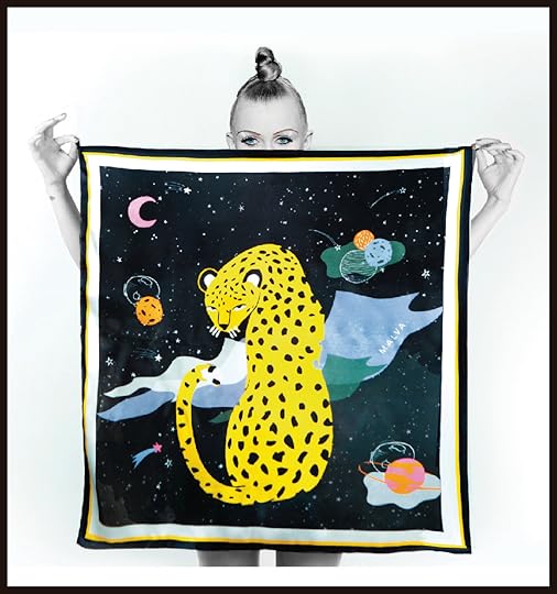 El sello original de Malva son los pañuelos, 100% seda con terminación a mano y calidades como el satín y el twill donde jugamos con imágenes novedosas predominando formas nuevas que juntas corazones con tigres y estrellas, pero además que juegan con colores vibrantes. Algunos de nuestros diseños incluso son dibujados a mano por nosotras.