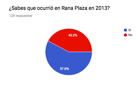 Al analizar los resultados se puede concluir que, a 5 años de la tragedia del Rana Plaza, sólo el 57,8% de los encuestados sabía que había pasado ese fatídico 24 de abril de 2013. Asimismo, un porcentaje similar (57,8%) señalaron que ese acontecimiento, no cambió su consumo de moda.