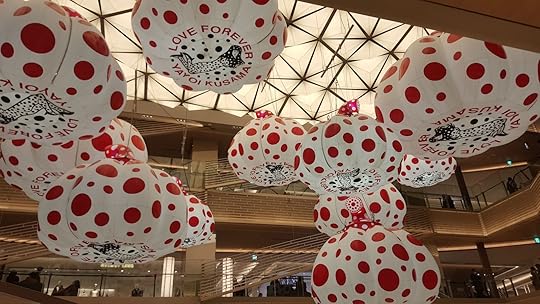 Uno de los aspectos, que me llamó mucho la atención de Ginza 6, es la decoración de su zona central, que estuvo a cargo de la maravillosa artista japonesa, Yayoi Kusama, lo que viste inigualablemente el espacio.