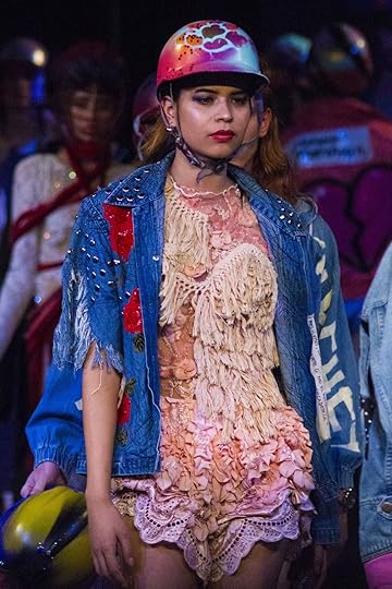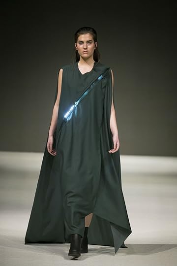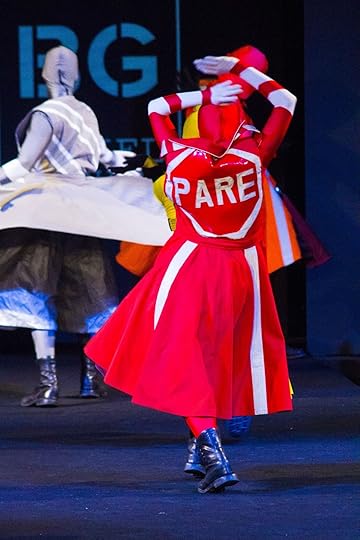 "La propuesta que presenté para el SFW llamada 'Tramas Rescate' es un espectáculo de moda que instala al cuerpo vivo como soporte y medio escénico, diseñando una visión muy personal de urbanidad mediante distintas materialidades, texturas, colores, teñido y pintado a mano y artesanal, pedrería, graffitis pintados en cascos dados de baja y recuperados en el persa Biobío, textos, etc.