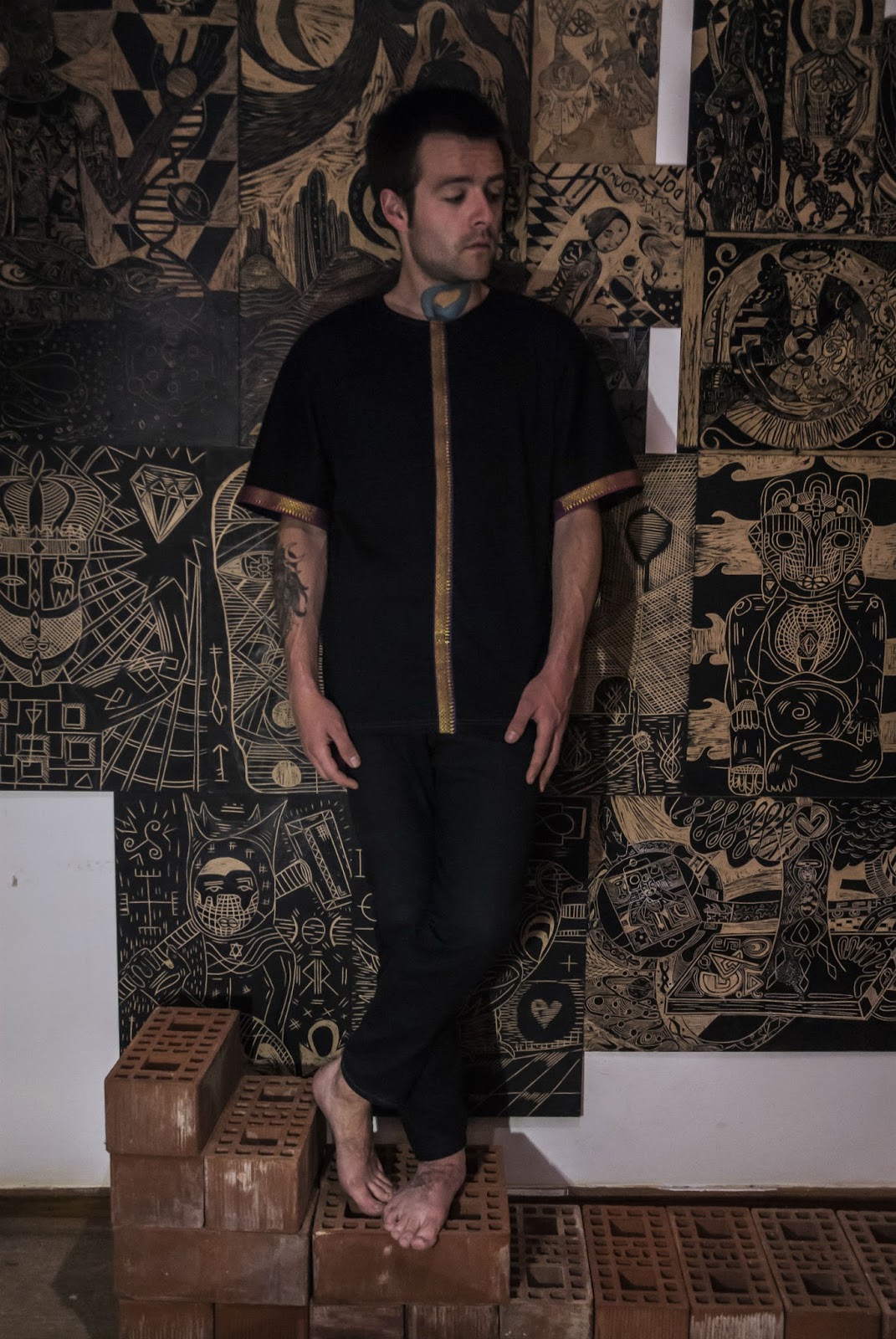 "Mi ropa, la metamorfosis de mi arte, las costuras grandes y expansivas, las incisiones talladas de mis xilografías, mi trazo, mi mano, la fuerza y precisión que utilizo para crear mi arte se traduce en bordados por mi mano. La impronta de 'poner algo donde no va', algunos bolsillos hacia la espalda en vez de adelante, cosas sobrepuestas encima de otras a la 'fuerza', deformar algunas partes dando otro tipo de equilibrio, ya sea visual o de forma. Lo brusco, incómodo, inacabado a propósito con el fin de demostrar que no existe una perfección. Algunos brillos para el día y para hombres. Sisas con oversize para jugar con las tallas y lo unisex. Además lo espiritual está alineado con mi arte, cosa que expongo en poleras y chaquetas con cintas de carácter ritual".