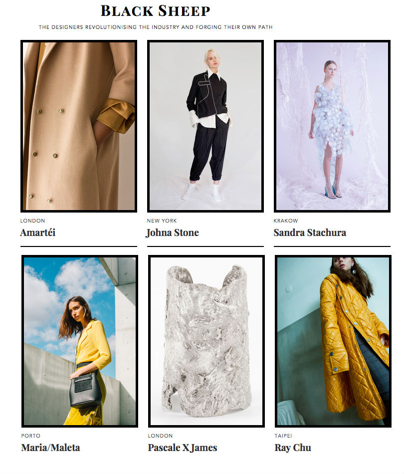 Zsigmond Dora MenswearUna vez seleccionada una etiqueta, se les pide su lookbook, ya que la imagen lo es todo. Sin una buena foto es imposible pasar a una segunda etapa. Luego se le envía una invitación y se le solicita mandar un diseño. Robert, afirmaba que diariamente revisa alrededor de 30 a 50 lookbooks y que le ha dicho "no" a muchos diseñadores.Asimismo comenta que Not Just a Label posee una curatoría que incluye a creativo de todo el mundo, y que tiene una sección denominada Black Sheep u oveja negra, donde se pueden encontrar los 2.000 que están más preparados para salir al mercado. Es decir, reúnen las condiciones para trascender como marca según los criterios antes mencionados.