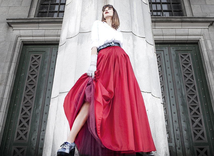Por último, una paleta de colores urbana inspirada en la señalética de tránsito y los materiales de construcción: azul eléctrico, rojo, naranja y amarillo saturados, se cuelan en la colección en prendas puntuales que aportan acentos de color a los clásicos monocromos de Kostüme. Tapados oversized en paño azul eléctrico, camisas extra largas en rojo y vestidos en crepe naranja intenso irrumpen los neutros y agregan color al invierno. Complementan una línea de anteojos de lectura con clip-on en rojo intenso y azul vibrante en colaboración con Vulk Eyewear".