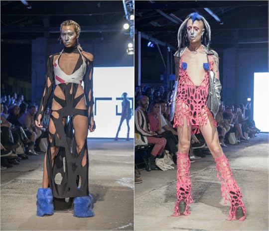 Asimismo nos parece importante cuidar los materiales con lo que se confecciona la propuesta, ya que una mala elección de tela, puede llevar a que se visualice con una menor calidad de la que se aspira. Si bien tenemos claro lo complejo y caro que es conseguir géneros de buena factoría, creemos que la innovación y el reciclaje puede ser una alternativa para resolver este asunto y sumarle un valor agregado a lo que se exhibe. Sabemos que se utilizó el corte láser y sublimación lo que nos alegra, pero creemos que siempre se puede aspirar a un "segundo estadio" creativo, que enaltezca la técnica y la tela.