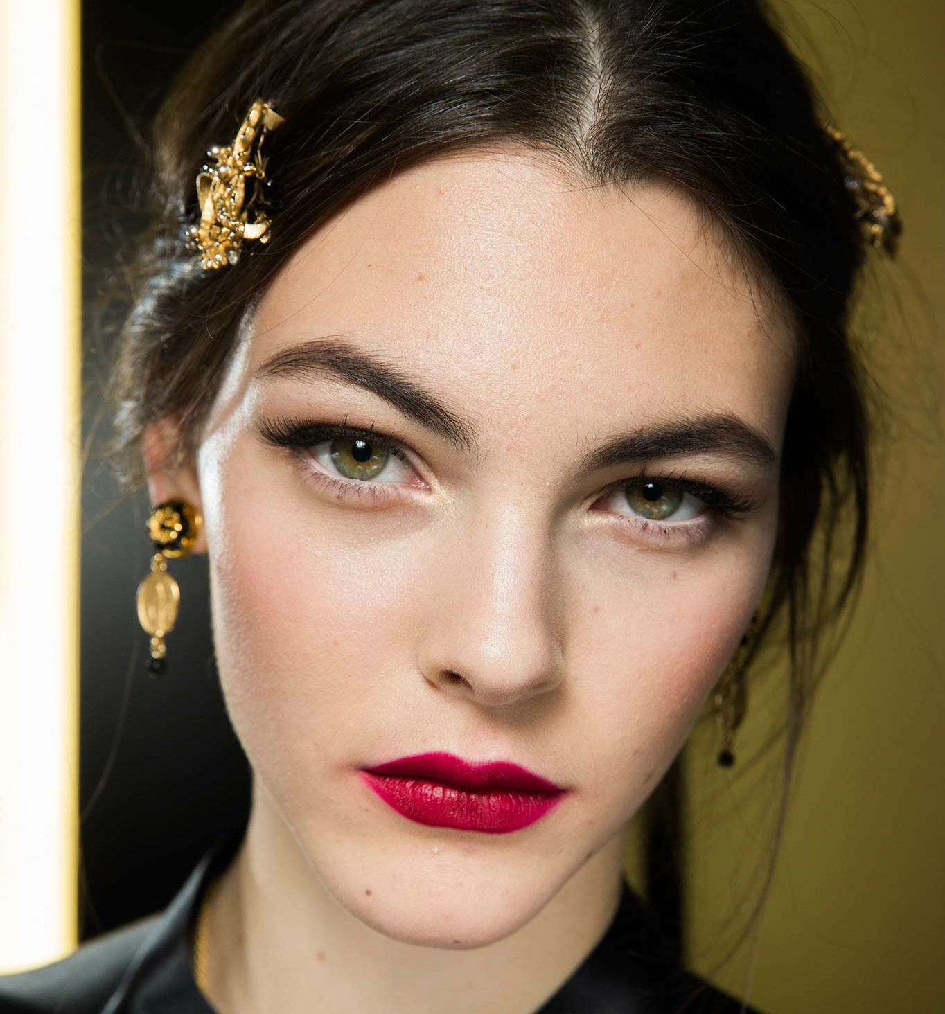 Por otra parte, en las pasarelas seguimos viendo una piel hidratada con efecto strobing, cejas marcadas, pero con un protagonismo indiscutido de los labios burdeos mates.
