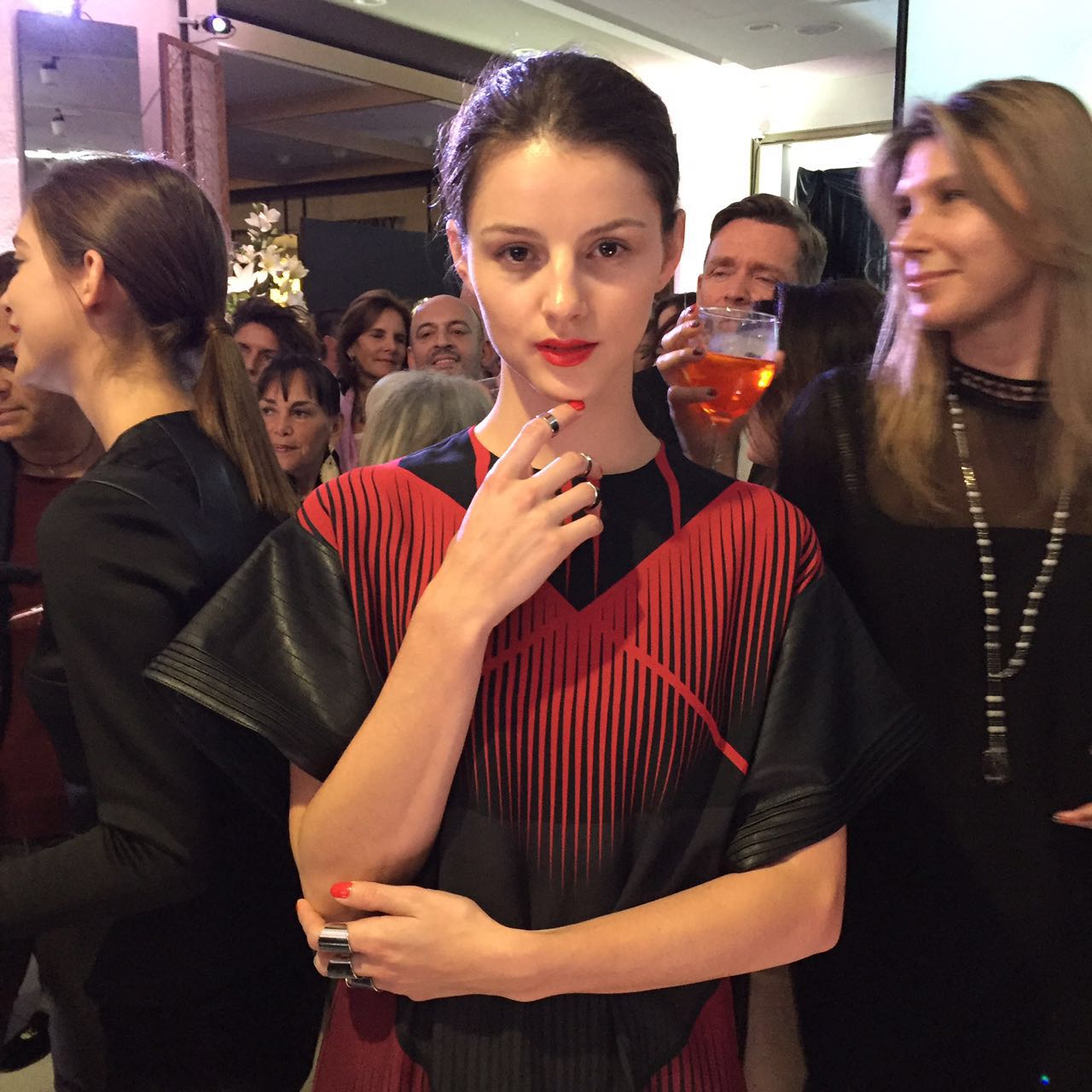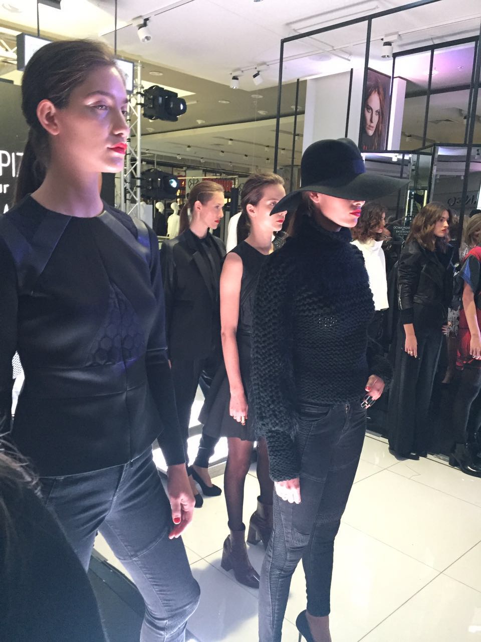 El evento se realizó en Falabella del Alto las Condes y nos encontramos con parte importante del mundo de la moda local. Muchos esperaban un desfile más tradicional, estilo pasarela (incluyéndome), pero la puesta en escena fue algo distinta: las 28 piezas que Pizarro diseñó para la marca ya estaban en exposición en distintos colgadores y maniquíes previo al desfile.