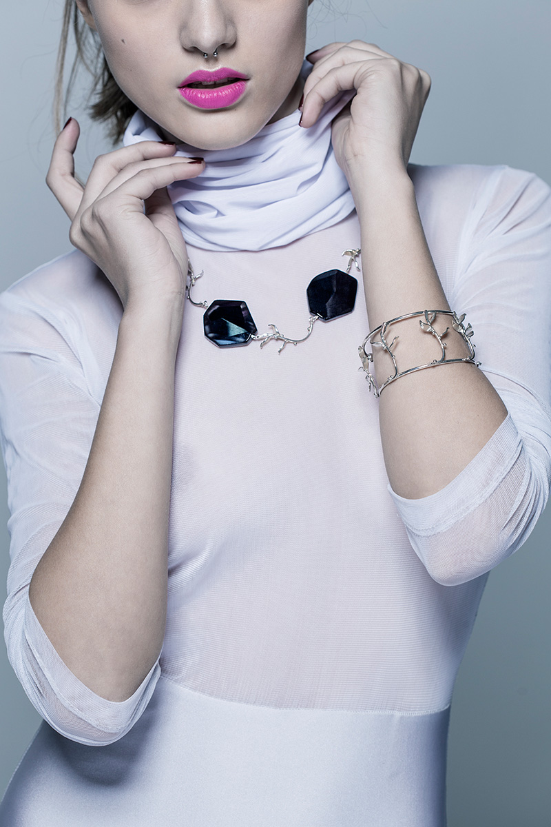 Tras él encontramos plata, bronce y el, recientemente, incorporado cuero ampliando su negocio a las carteras. “Me gusta trabajar la nobleza del material”. Mi proceso creativo, contrario al tradicional, empieza con ellos”. Aún así, su parte más íntima solo puede verse en su espacio virtual. Una colección denominada Ictus con piezas de cerámica enlozada es la que ha visto la luz, hasta el momento.“Son piezas muy del alma”, nos cuenta emocionada.