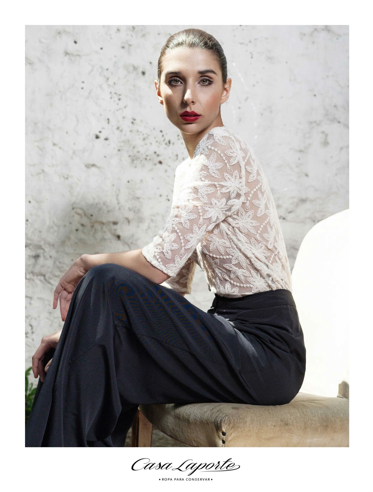 Créditos producciónFotografía: Juan Queirolo Fuentes (Elestudio.cl) / Producción: Casa Laporte / Maquillaje y pelo: Mackarenna Claro / Modelo: Aurora Anita