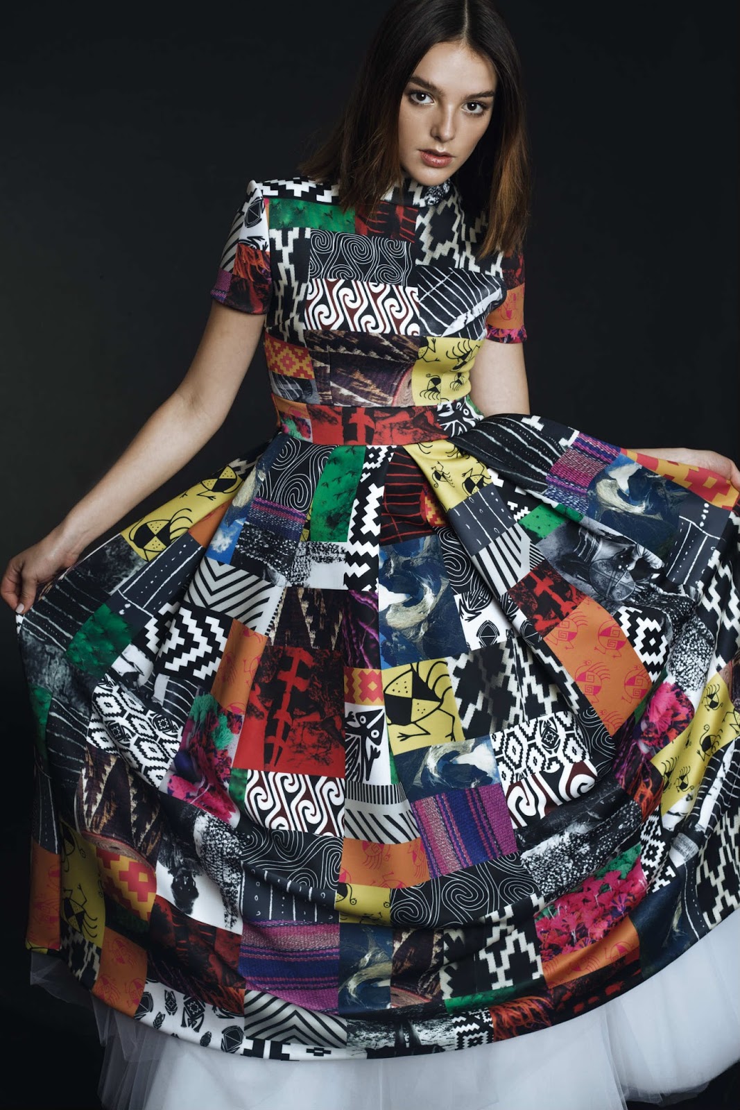 Por su parte, Sebastián del Real Ossa se inspiró en la “china chilena” aunque en su versión más contemporánea representando el concepto de diversión, entretenimiento y distracción simbolizado en su baile. El vestido se diseñó en base a estampas con paisajes, frutas y gráficas indígenas entre otras intervenidas por el diseñador.