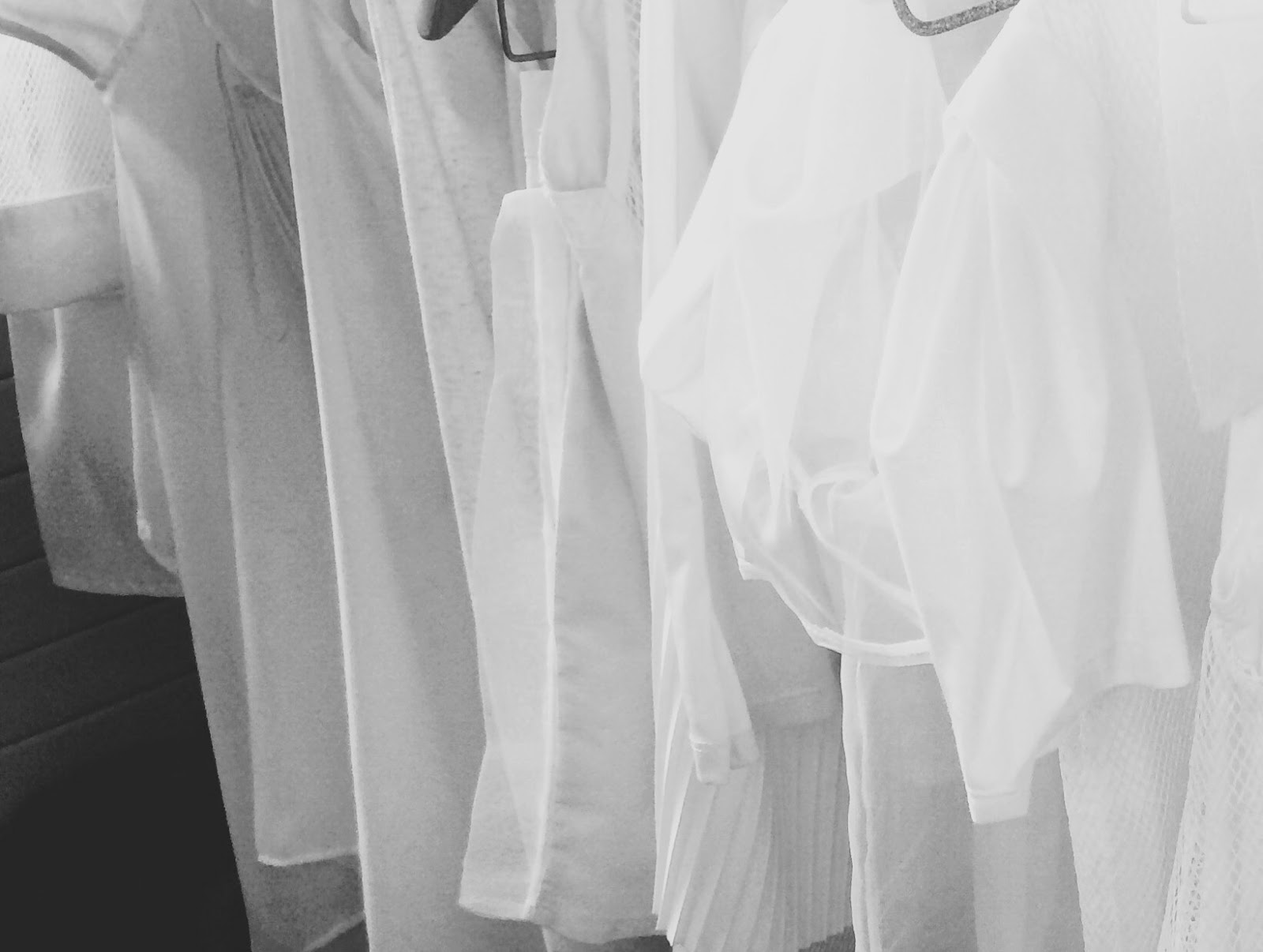 Los clutches de la colección fueron hechos con telas recicladas de camisas masculinas desechadas y sus forros fueron pintados a mano, y los cierres todos distintos provienen de una mercería que cerró (#merceriasenextinción)Empleé tencel, liocel y algodón orgánico además de géneros recuperados y papeles reciclados para accesorios en una paleta blanca y negra".