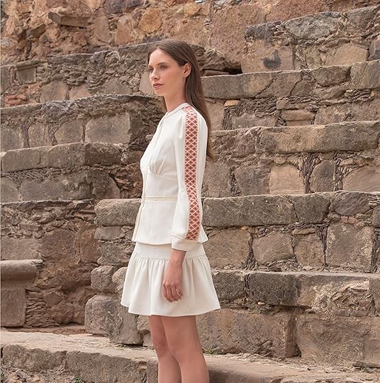 "El arte Wixárrika nos habla de su cosmovisión: la historia de cómo sus dioses crearon el universo, que se originó en una sola gota de agua de mar debajo de la luna, antes de que naciera el sol. Las costumbres, símbolos y colores a través de los cuales se expresan los Wirrárika se integran en la estética de mis creaciones, convirtiendo el uso de una prenda en un acto de transferencia, permitiendo momentáneamente que la cosmovisión profunda y generosa toque el mundo", afirma.