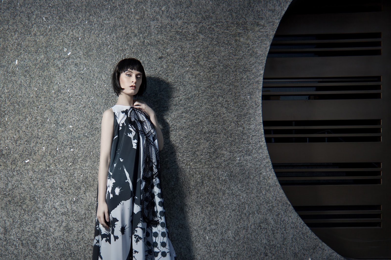 En cuanto a los estampados de la colección, pasan por todas sus escalas de micro a macro en color completamente negro. Los colores para esta colección son: blanco, negro y natural".
