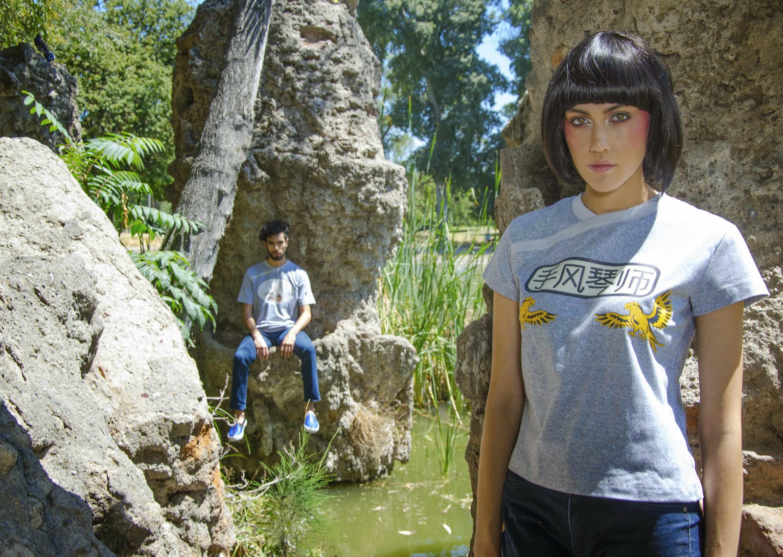 Teníamos el relato, pero nos faltaba traducirlo en tela. Por eso partimos trabajando la ilustración del organillero que estuvo a cargo de mi hermano ilustrador, Juan Ignacio. Con ella, Cristian comenzó a trabajar las siluetas mezclando elementos de los trajes típicos chinos con una estética donde la comodidad fue clave. La idea era realizar prendas cotidianas, básicas que tuvieran guiños a lo pop. En ese camino Cristian decidió utilizar los remolinos como elementos destacados de la propuesta. “El resto fue resultado de la incorporación de los diferentes elementos del proyecto, la figura y la leyenda del organillero en chino”, complementa.