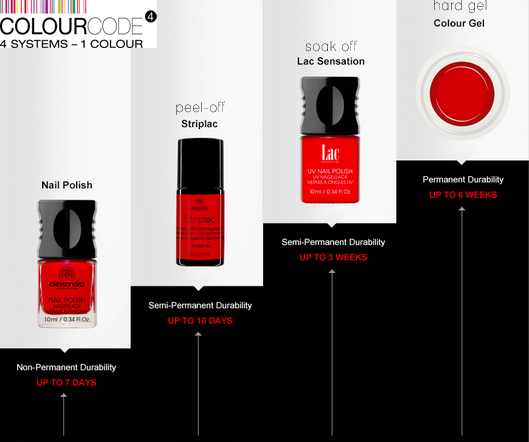 Esta imagen grafica la duración de las distintas línea de esmaltes de la marca. Recuerden que la uña crece eso síAh! Los productos y servicios de alessandro International están disponibles en todos los salones de Peluquerías Palumbo y Sebastian Ferrer Hairvolution del país.