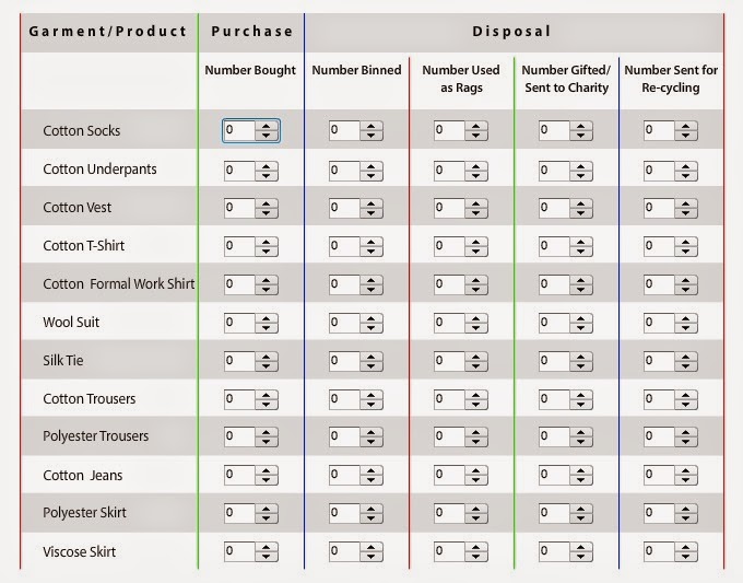 permite medir la huella ecológica de todos los textiles del hogar. Acá sólo una muestra de la primera pantalla, porque luego se mide el gasto energético en el lavado. Eso sí, sólo es apta para muy motivados (no es muy simple)3- Me preocuparé del packaging de mis compras de moda. Andaré siempre con una bolsa reutilizable en la cartera para erradicar las bolsas plásticas de mi hogar o al menos minimizarlas en un 80% (ya me puse en campaña para esto en el supermercado). Para ello privilegiaré marcas que utilizan empaques ecos y de bajo impacto ambiental.