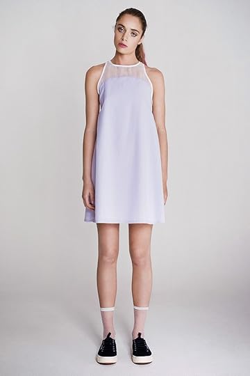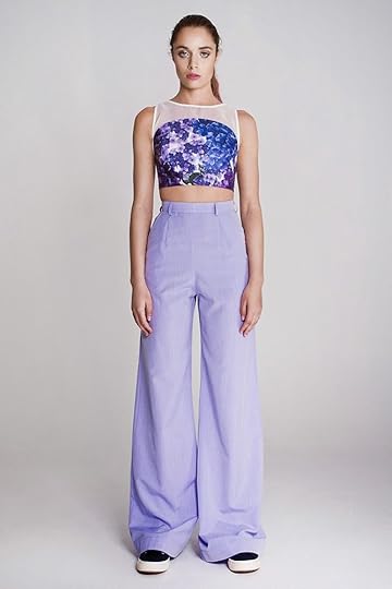 Prendas modernas que destacan el cuerpo femenino, resaltando la cintura, se mezclan con otras que se despegan, dando vida a un look urbano y casual con el blanco, lavanda, morado y jacinto como la paleta de colores base.