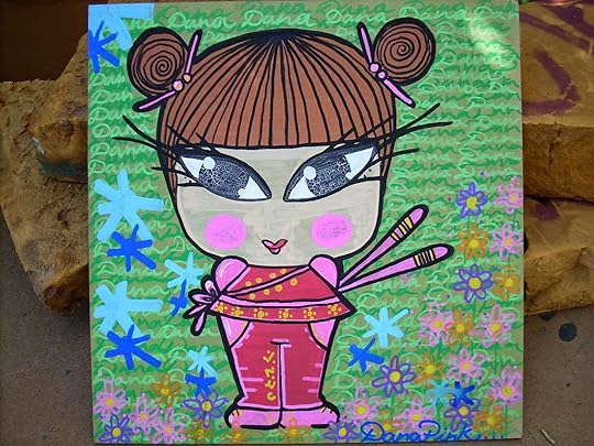 DanaPinkA DanaPink , graffitera chilena, que conocí gracias a Makinita de Coser, se caracteriza por representar el mundo femenino en la calle como en diversos objetos. Revisando su fanpage encontré además de graffitis, zapatillas y ropa customizada por ella, poleras /camisetas, cuadros (vi uno donde Makinita) y muñecas.