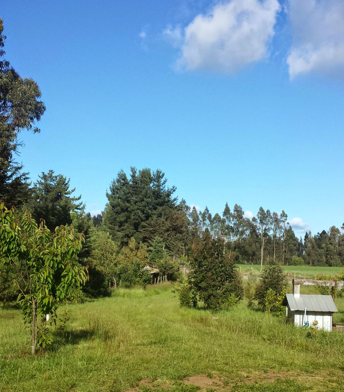 Paisaje (arriba) desde la Ruca Kimun (abajo) de la Comunida Makewe zanja