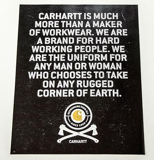 "Carhartt es mucho más que un fabricante de ropa de trabajo. Somos una marca para las personas que trabajan duro. Somos el uniforme para cualquier hombre o mujer que decide tomar un rincón agreste de la Tierra".