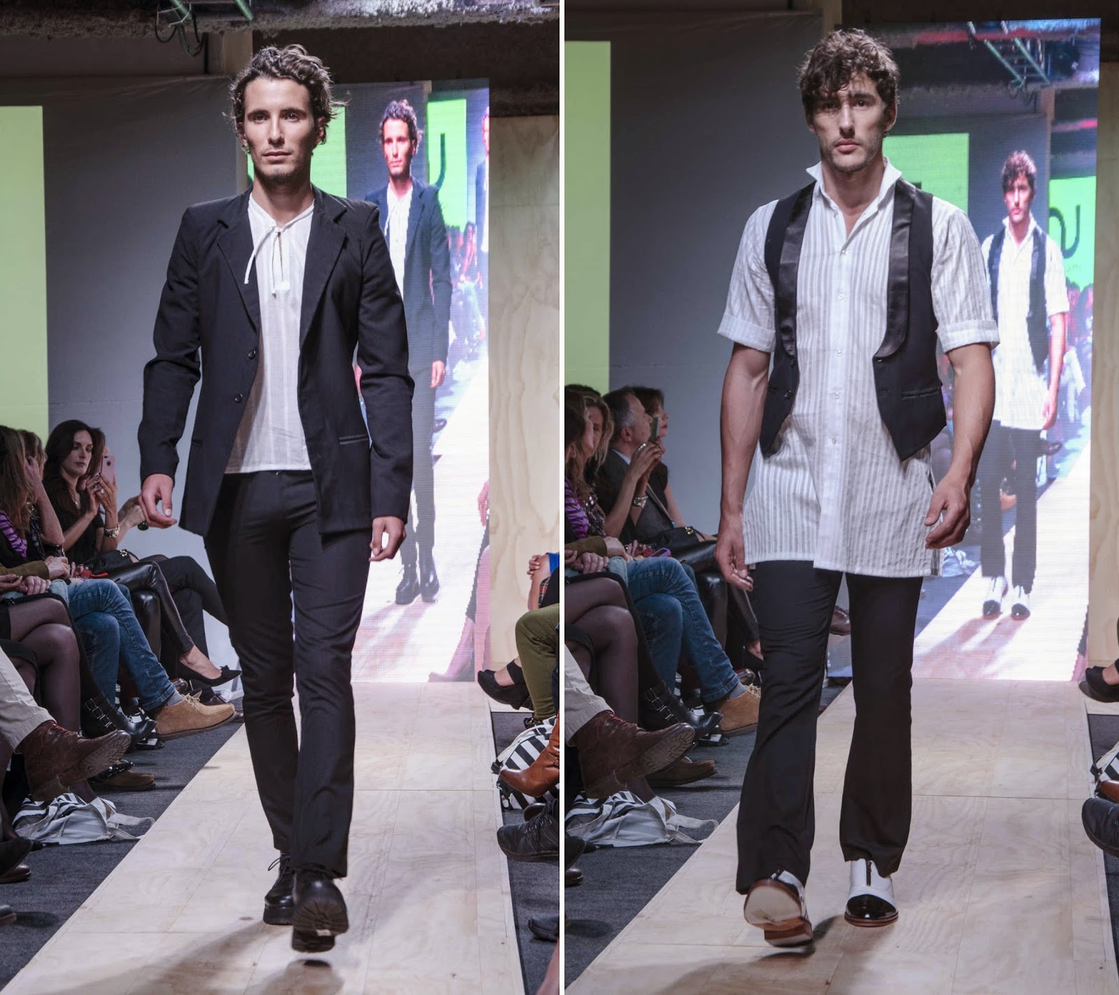 Cabe mencionar que fue divertido ver a David García, autor del libro " Vestirse por los pies " (algo así como el Manual de Carreño para el buen vestir de un caballero), mientras aparecían las siluetas masculinas llevando bermudas con blazer o ternos sin calcetines: todo lo que un caballero no debería hacer.