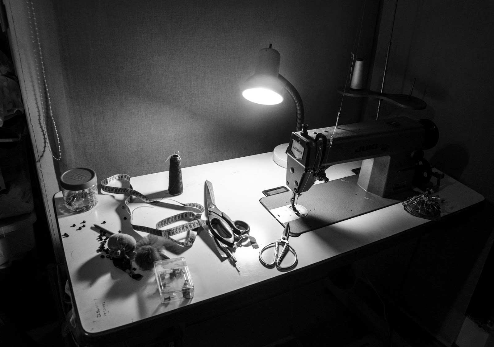 Nos recibe su partner Camila Garretón, a quien Sebastian conoció en la época de universidad. Entre los dos materializan las ideas que el diseñador define; las editan y finalmente, las confeccionan. Esta dinámica de trabajo funciona a la perfección, lo que se evidencia cuando nos hablan y se escuchan el uno al otro atentamente. Pero el equipo no son solo ellos, también lo integran dos alumnas en práctica, todos tienen un rol muy definido. Otra persona que participa es su madre, quien de vez en cuando sube a ver en que está todo. Cada uno de ellos contribuye a que el taller tenga ese aire familiar.