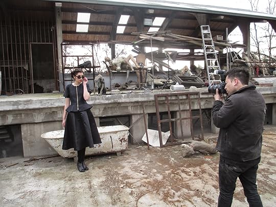 Créditos de la producción Fotografía: Mirko Quiñones / Maquillaje y arte: Sole Donoso / Modelo: Carol Araya / Zapatos: Gaytan / Locación: La Perrera Arte / Agradecimientos especiales para el artista Antonio Becerro por facilitar las esculturas perrunas y a Juan Sandoval por la buena voluntad