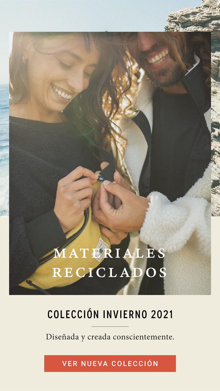 - Poliéster reciclado: "tela fabricada a partir de residuos PET, una de las formas más convenientes de reciclar botellas plásticas y evitar su acumulación. Con esto buscamos reducir el consumo de energía y el consumo de CO2 y disminuir la dependencia del petróleo como fuente de materia prima", complementa. Al igual que el material anterior, lo seleccionaron para los polars, que casi no necesitan lavarse, ya que en caso contrario eliminarían microplásticos en el proceso. A la fecha han logrado reciclar 36.995 botellas de plástico.