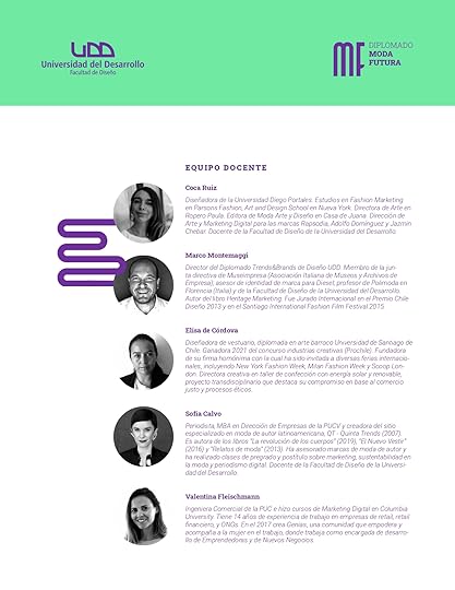 Coca insiste que el Diplomado Moda Futura: estrategia y gestión sostenible para la moda es un programa desarrollado específicamente para la moda con el sello de excelencia de la Universidad del Desarrollo. "Se posiciona con una mirada completa y actualizada a los desafíos que hoy enfrenta esta industria, hace una lectura clara del contexto y plantea múltiples posibilidades de participación en el mercado, es impartido por una variedad de académicos especialistas nacionales e internacionales, con conocimientos y experiencia relevantes para las disciplinas del curso.