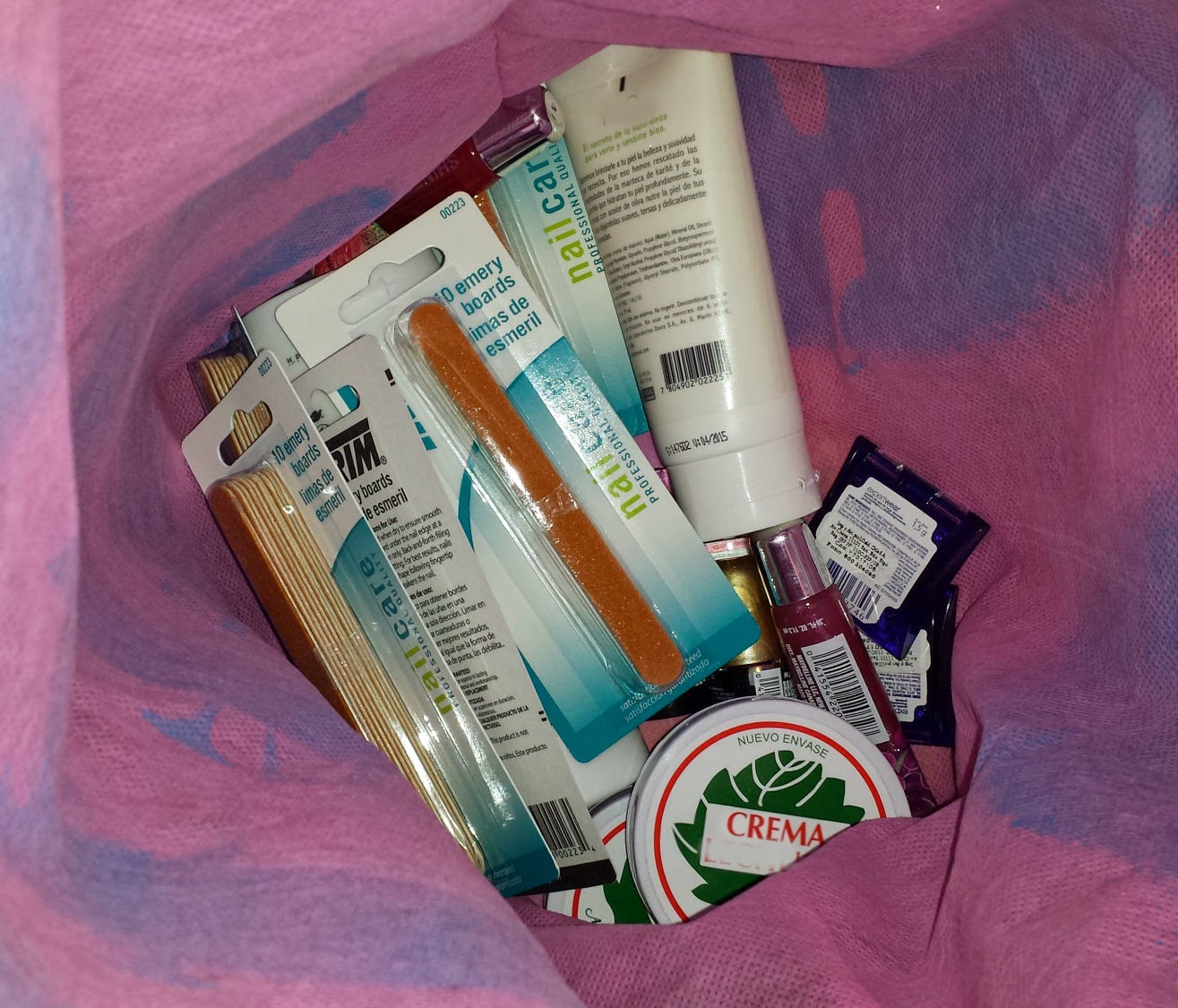 Te dejo la donación de Ale y mía como ejemplo de lo que puedes juntar: limas de uñas, sombras, gloss, esmalte de uñas, cremas (y un largo etcétera que lo dejo a tu imaginación)