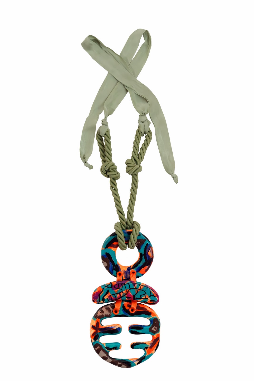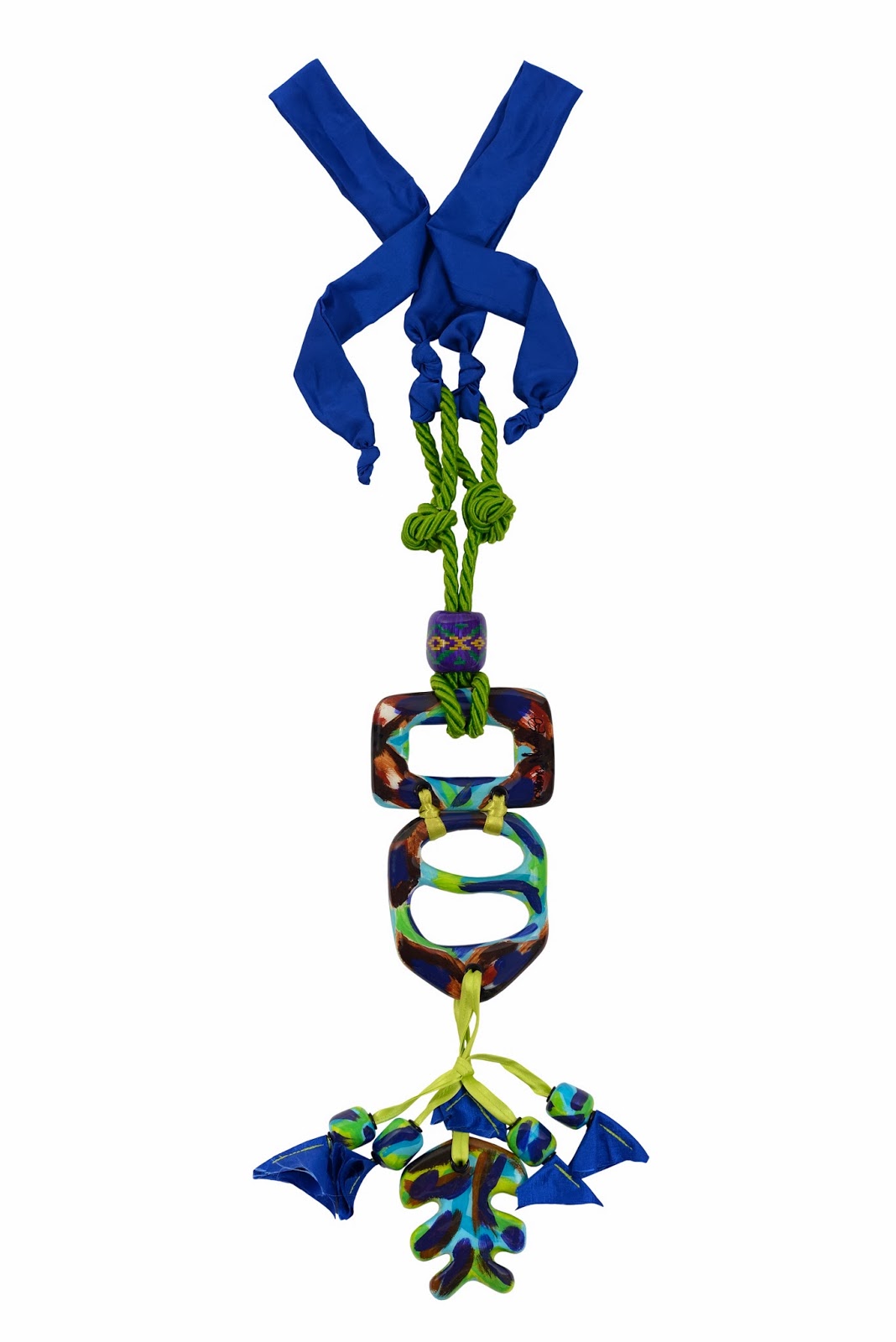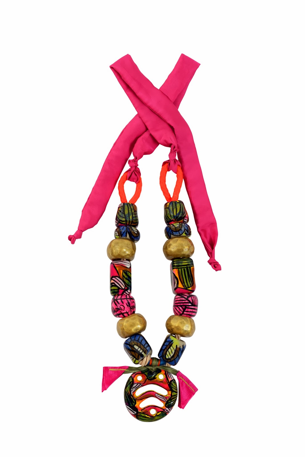 Alfonso nos relata: “Esta colección primavera – verano 2014, es un disfrute étnico-efervescente que encanta por crear un código auténtico entre lo artesanal y el lujo de una joya. Café, madera, tierra, rio y arcoíris de plumas son parte de la paleta de color impresa en el cuero que se une con la madera entrelazándose para formar unos maxi cinturones que visten la silueta femenina, carteras con pinturas voluminosas que son un complemento perfecto para todo atuendo y collares para una mujer vanguardista, arriesgada, que le gusta romper con los arquetipos y crear nuevos códigos al vestir diseño de autor”.