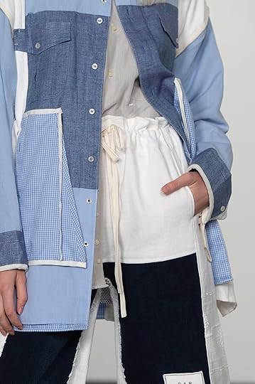 El resultado de esta apuesta por el suprareciclaje colaborativo fue la colección llamada Herencia que reflexiona sobre los objetos vinculados al día a día, la familia y el lugar. "En la colección trabajo con camisas, jeans y manteles de mis vecinos, prendas que se repiten y hablan del lugar donde vivo actualmente. Cuando deconstruyo estas piezas lo hago de una manera simple y rápida, algo que aprendí de mi familia. Se generan prendas usables, urbanas, que te acompañan durante un largo tiempo. Creo que es importante alargar la vida útil de los objetos y construir una historia", insiste.