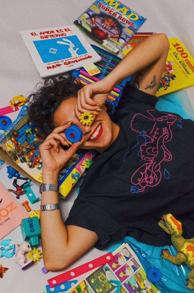 "Me lo imagino siempre colaborando con otres artistas y creadores. Mi principal colaborador es Furia del Nilo o Nilo, mi compañerx de hace años y quien me impulsó en gran medida a todo esto. Es un vínculo de reciprocidad y nos gusta bromear diciendo que somos como la Gabriela Mistral y Doris Dana, porque ellas trabajaban, se querían y se admiraban. Además del Nilo, hay muchos amigos y cercanos que siempre nos dan apoyo, difunden la marca o con quienes creamos en colaboración. Cola Loca al final es eso, un reafirmar la importancia del vínculo, la identidad y la subversión".