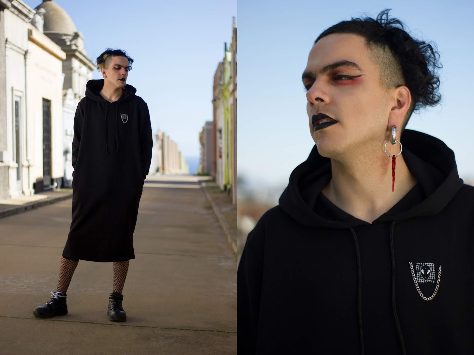 . En el ámbito profesional quería llevar su creatividad a un plano más físico y tangible del que le ofrecía sus estudios de fotografía publicitaria y audiovisual. Mientras en lo personal, después de una fuerte depresión y crisis de identidad, encontró en la serigrafía un canal para expresar sus emociones y pensamientos. "Con el tiempo me propuse componer diseños mediante símbolos y gráficas, homenajear a personajes iconos que me representaran y así ocupar y mezclar también todas las herramientas digitales que había adquirido en mi trabajo como fotógrafo", me cuenta. En ese trayecto se definió como transgénero no binario y procuró que su propuesta fuera coherente con esa esencia. Luego de un destacado paso por Pasarela Valparaíso 2019 junto a Costura Local, nos contará cómo lo está consolidando su apuesta creativa.La propuesta de Nunka Inalien