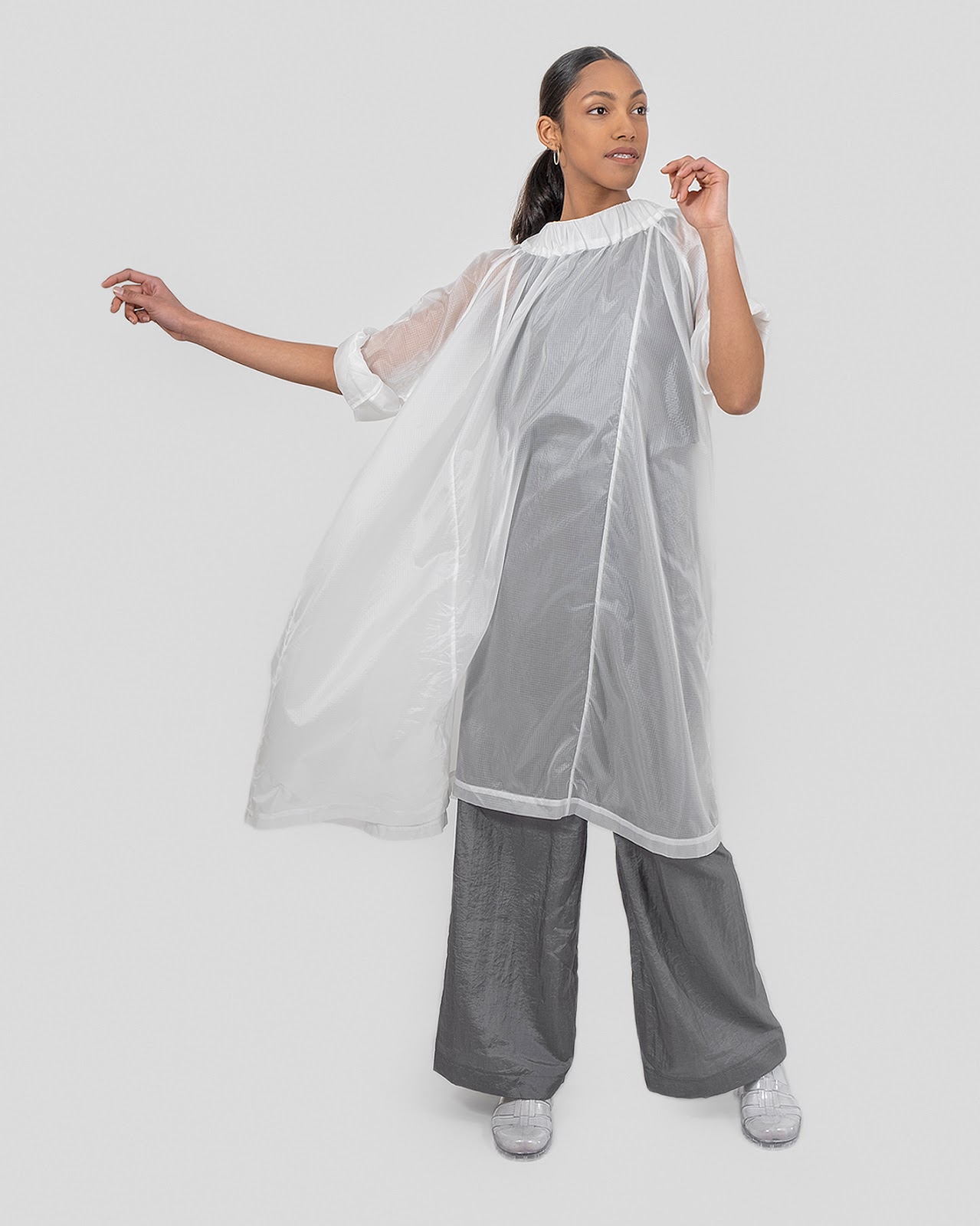 La tarea inicial para desarrollar la colección fue tomar, como punto de partida, la camisa masculina. Decidimos también no usar pinzas ni mangas sastre, las que reemplazamos por raglán y sistemas ajustables para manejar los volúmenes del cuerpo, no necesariamente masculinos o femeninos. Nuestras siluetas transitan por lo oversized, con énfasis en la columna y el trapecio. Ocultando y revelando el cuerpo a voluntad de quien lo viste. De esta manera conseguimos un diseño amigable para cuerpos diversos y un producto totalmente apto para la vida diaria: cómodo, liviano, lavable y combinable. Todas estas cualidades sin descuidar la belleza.