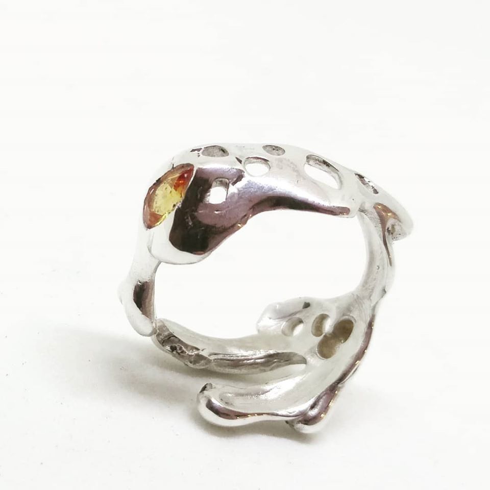 Desde esta perspectiva su proceso creativo se origina a partir de un material elegido, ya que confiesa que muy pocas veces dibuja o traza ideas previas. "La piezas de joyería de autor son libres, el proceso te permite ir fluyendo a medida que vas resolviendo la arquitectura de una pieza portable, y me pasa que en ese camino, el resultado me lleva a sorpresas o finales mejores de los que me imaginé", añade.