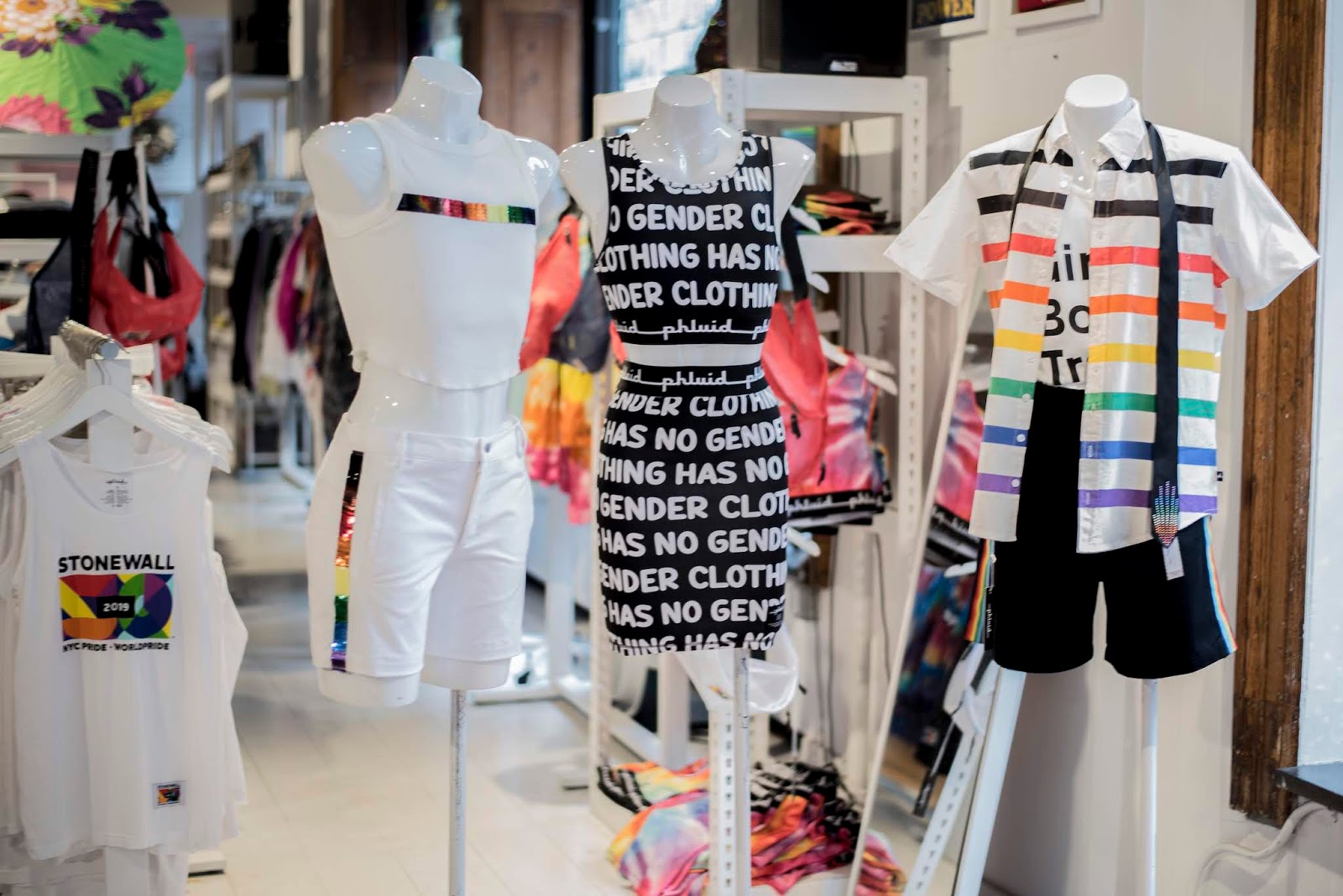 Como visitamos la tienda en pleno periodo del Pride 2019, apreciamos una colección muy cargada al arcoiris y las consignas conmemorativas de los 50 años de Stonewall, donde las poleras o camisetas en todos sus formatos eran las protagonistas.