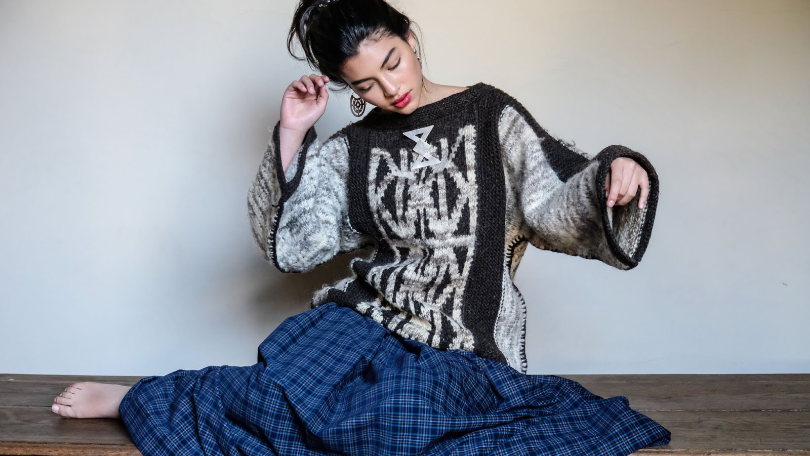 "Todas mis colecciones están unidas por fragmentos visuales que voy encontrando y que completan entre sí cierto mi anhelo estético. En específico, esta última historia tiene que ver con pinturas antiguas y símbolos encontrados en la Región de Ladakh, en el punto más norte de India. Una lugar muy escaso y de mucha belleza, en las montañas. Ha sido un sitio importante en las rutas de la Seda porque geográficamente está en un punto de paso desde China (donde comienza la Ruta de la Seda), hacia Asia Central y luego Europa.