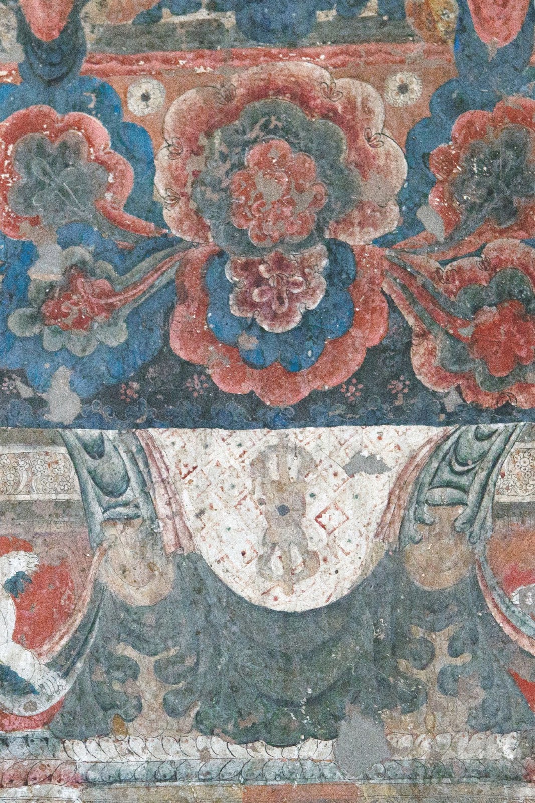 Entre las aldeas dentro de estos valles existen construcciones pintadas de blanco que son monasterios budistas, localizados en lo alto. De a poco comencé a registrar las historias al interior de estos muros oscuros llenos de narraciones, pinturas de dragones y deidades que vinieron alguna vez de la tradición oral y de textos clásicos. Así fui espontáneamente registrando estas narraciones visuales dentro de construcciones minimalistas, en un paisaje eterno. Eso es lo que registré en una serie de viajes al lugar y lo que luego traduje en esta última colección. Estando instalada en India me permite estar en contacto con lugares como estos, que permiten alimentar mi propio imaginario visual, el que tiene que ver más con una narración personal.