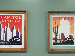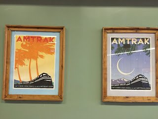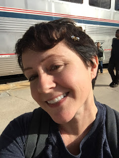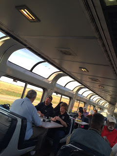 · Aylynn, a beautiful and sweet attendant greets us as we get on the train in the evening in New York. She mets us right out side the sleeping car with her clipboard resting on her hip. “Two Elizabeths. I like that,” she says checking us off her list. She shows us to our compartment (Ooooo a small, cozy space that I’ve always wanted!) “You are expected for dinner in the dining car,” she tells us as we get settled. Fancy!· You can’t avoid meeting people at meal times if you are in the dining car. You are seated with strangers. Our first dinner companions are a younger couple going to Ann Arbor for a wedding. They seem a bit of a mismatched couple. We have fun brainstorming a concept for a zombie night train movie with them. Eugene, our waiter, will be one of the stars.· A lot of Mennonites who speak German board the train. One couple is so serious. They look like they felt so misplaced and not of this world. She wears a floral dress with a white bonnet and hiking boots. I wonder where they are going. She is not happy. A man, who I assume is her husband, has his arms around her protectively at all times.· Our first breakfast companions are Alfredo and his best friend from high school, whose name has escaped me. We have a great talk with them about reading and writing. Alfredo is a writer and a teacher. His friend, an engineer, along for the ride. Alfredo tells us about an amazing writing residency in Italy I think we must go to. He tells us about taking his own daughters on a train trip when they were teenagers. It gets me thinking about how much the girls would love this I think. Especially Frankie, she longs for a cozy place to call her own. Alfredo is writing a book about how reading is important to writing and asks if we’d interview with him later about that. Absolutely!· Off the train in Chicago for a five-hour lay over. We are super dizzy from being on the train for so long. Dramamine save me. We are so dizzy we think a woman in the lounge in Union Station has blue skin. But after a actual discussion about this we decide it's just a trick of light.· We see an older man with a therapy dog. The dog scrambles under his chair when anyone walked by pissed to be there and scared as hell.· We explore the Chicago streets and see my brother, my sister-in-law and my nephews who are dressed as purple minions for lunch (the nephews not their parents). Okay so they aren’t strangers, but they were such an anchor for me on this trip. The familiar among the strange. I’ll talk more about my brother in another post. I miss him and his family every damn day.· Our second dinner companions are an older couple from Kansas City. He was a newspaper reporter. He vividly remembers writing about Truman dying. She loves writing, but feels like she doesn’t have time with her sixteen grandchildren. I tell her to write anyway. Character list #3: Strangers on the Southwest Chief (the train from Chicago to LA):
