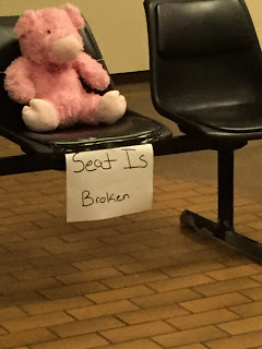 The Schenectady station was…. interesting. We were definitely not in the city anymore. The waiting room was small and lined with plastic chairs. Several were broken and to indicate their condition was this:
