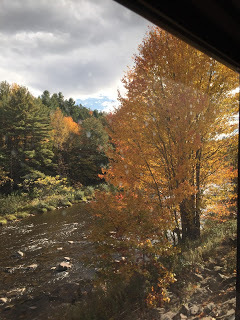 When we pulled out of Montreal there were graffiti covered city walls. There were brilliant orange and gold leaves in upstate New York. Unbelievable gorgeousness sound tracked by the soft whistle of the train and the tin-y easy listening in the dining car. The scenery once out of Montreal city limits was straight out of a Bob Ross Painting. Happy little trees everywhere.