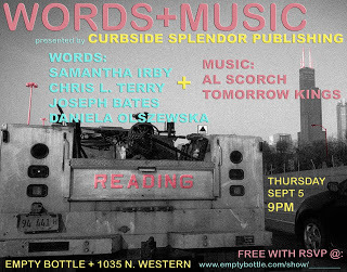 Irby. Terry. Bates. Olszewska. WORDS+MUSIC. Happening. Empty Bottle. September 5th. Coolness. Yes.