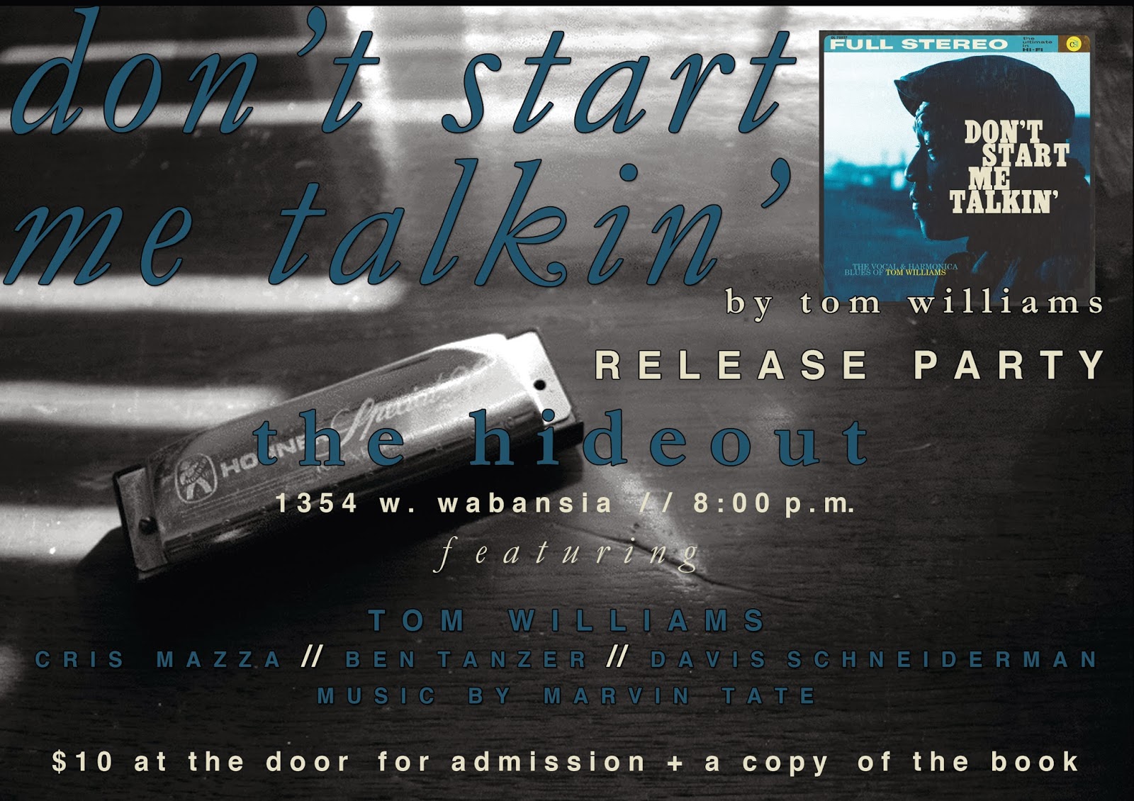 Williams. Mazza. Schneiderman. Tanzer. Tate. Don't Start Me Talkin'. Release Party. The Hideout. February 9th.