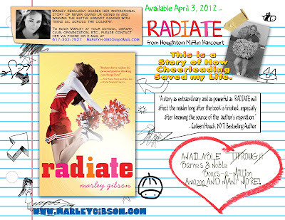 Marley's celebrating with an online pep rally on her website. You can join the party (and win prizes!) here: http://marleygibson.com/2012/04/02/online-pep-rally-for-radiate-release-day/