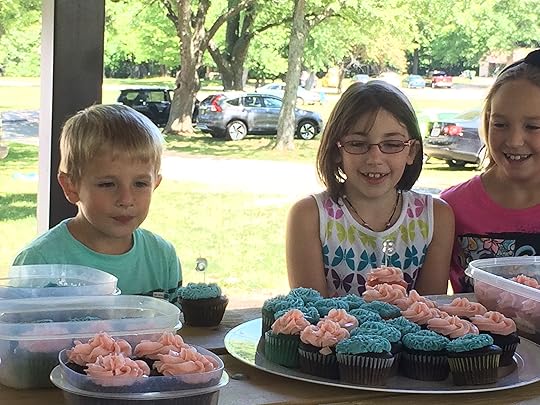 We had 15 kids and a slew of adults and so much fun! One of our local parks has shelters that you can rent out so we picked one with a big playground next to it and let the kids wear themselves out. Hubby grilled hot dogs and hamburgers, I baked six dozen cupcakes, and family and friends helped us make it a success.