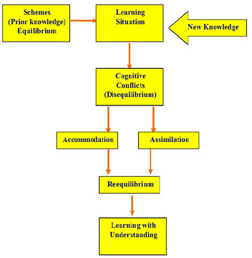 PIC 1 = theoretical framework menunjukkan teori consructivist yang menghubungkan element new knowledge, equilibrium, cognitive conflict sehinggalah berlakunya learning.