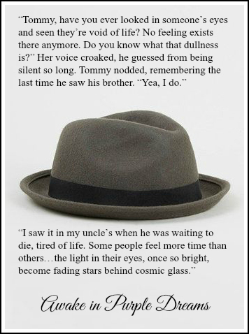 Awake in Purple Dreams ~ meaning dreaming while awake. In the books, it is a place where reality and dreams meet via a thin mystical veil that joins worlds. Reality becomes blurred and partially substituted by a visionary fantasy experienced while awake.