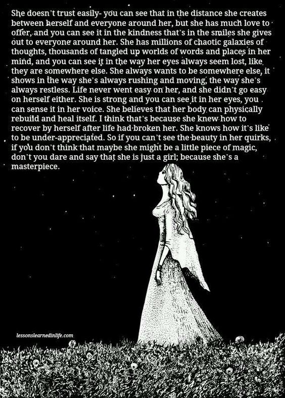 She’s free-spirited. She likes to do what feels right to her. The rules don’t apply, forget whatever people say or whatever the ‘law’ says, she will always question the rules and she refuses to conform to the arbitrary rules. She follows her intuition and her heart and she won’t be held down by anything or anyone.
